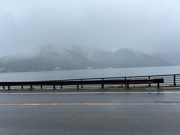 ↑ここの区間は丁度湖(谷中湖)の真ん中を走ります。